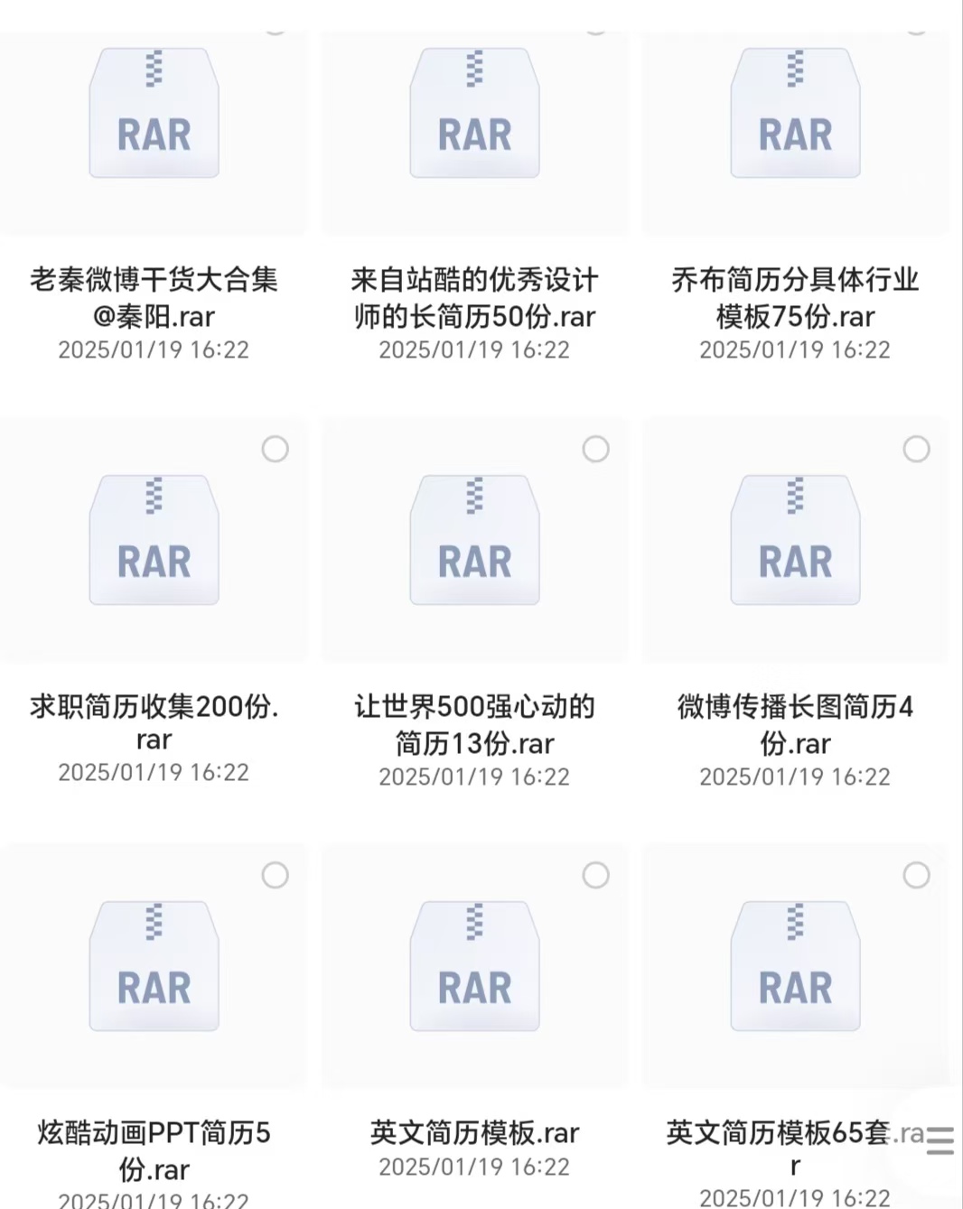 这些简历模版都是我在外面花高价买来的,各种各样的简历模版都有,而且模版的质量非常高,现在就业环境这么差,需要简历去应聘的人太多了,小红书上,也有很多博主在卖这个简历模版,你也可以拿去小红书这些平台去卖,一单卖个9.9、29.9,完全没压力,卖出去就是利润。
