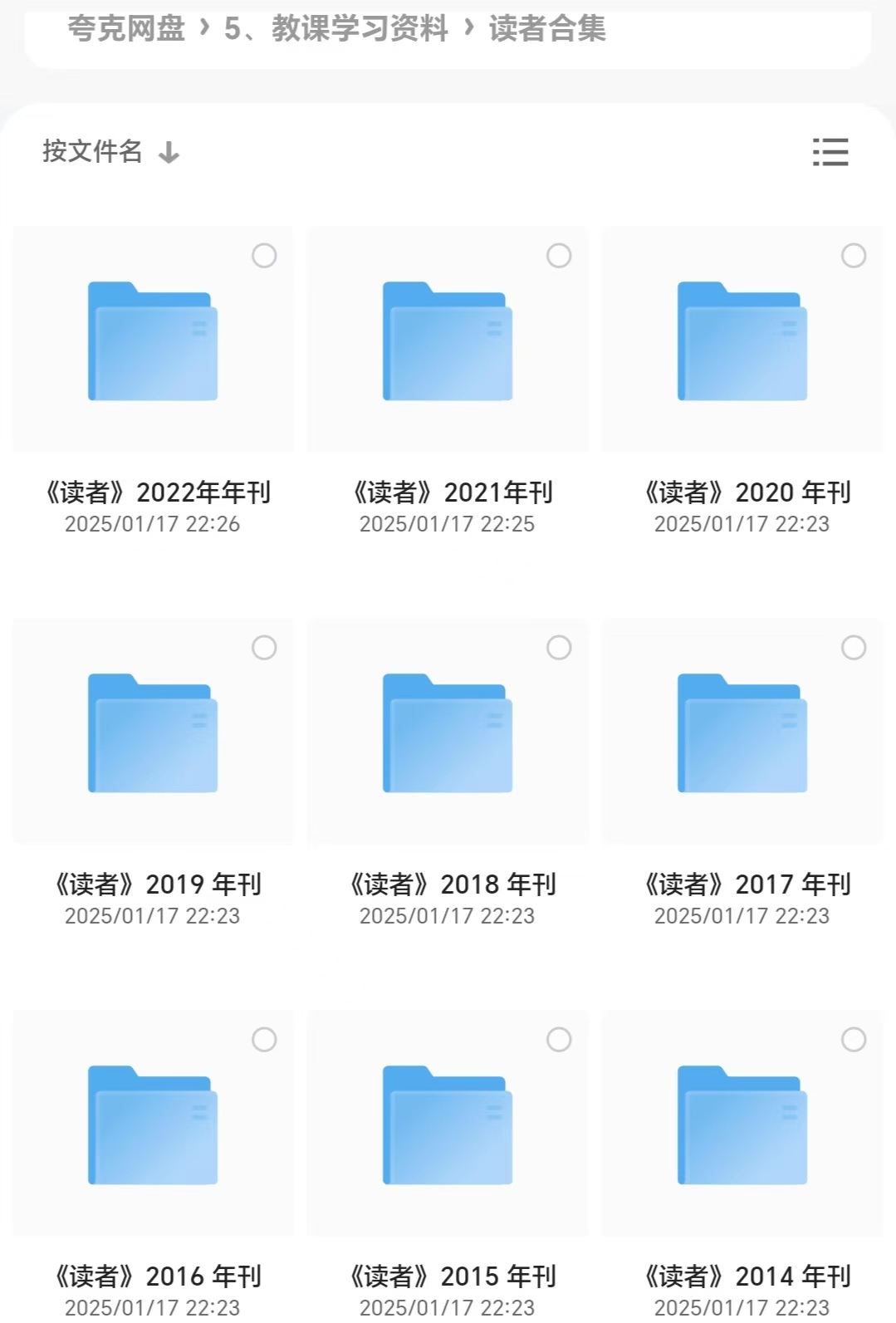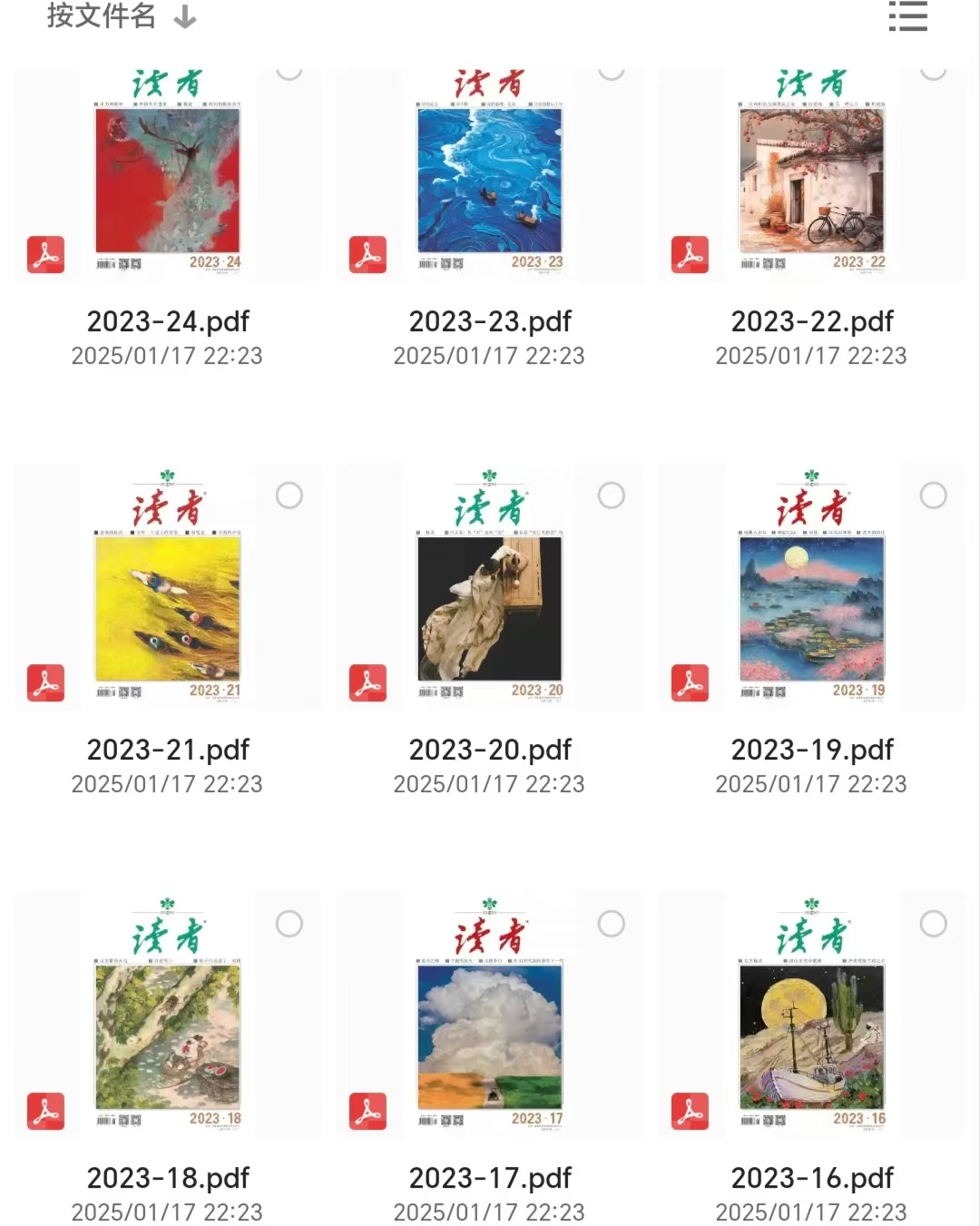 《读者》1981年以来历年合集珍藏资源 [ 5.7GB ] 栏目:教资资料 作者:gshzyk 时间:2025-01-17 22:41:21 这些资源都是我花高价买来的,可千万别错过。以防失效,点击下方链接,尽快转存就行!资源下载链接:https://pan.quark.cn/s/afb44a931716
